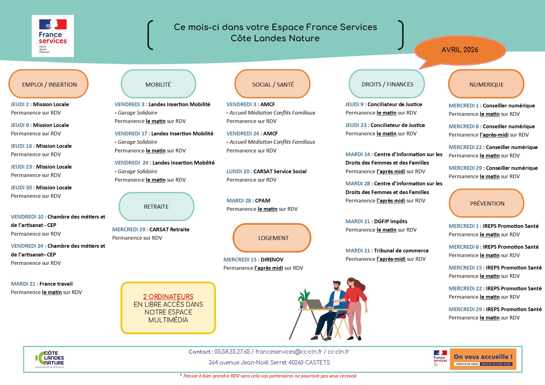 Contact : 05.58.35.27.65/franceservices@cc-cln.fr/cc-cln.fr