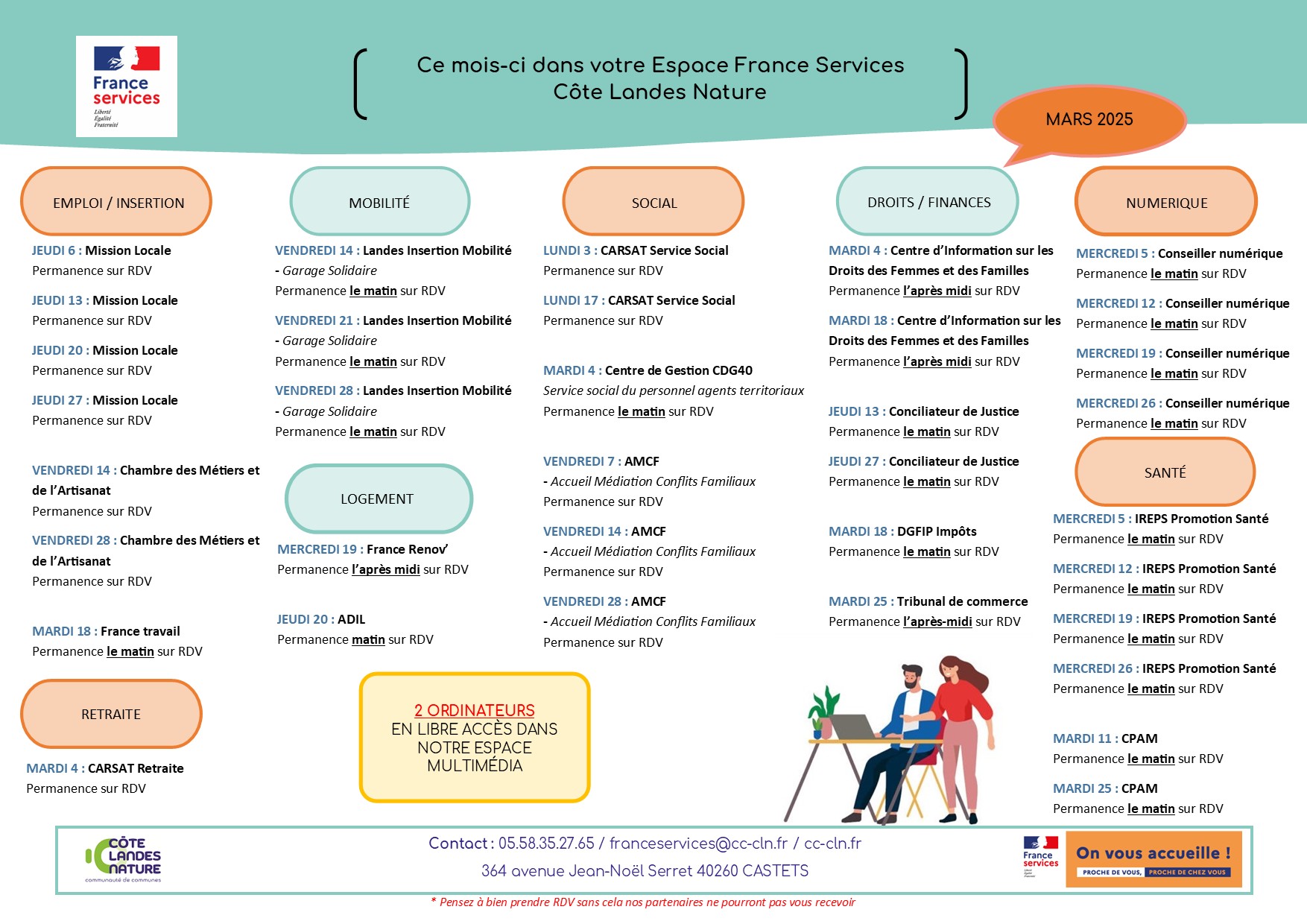 Contact : 05.58.35.27.65/franceservices@cc-cln.fr/cc-cln.fr