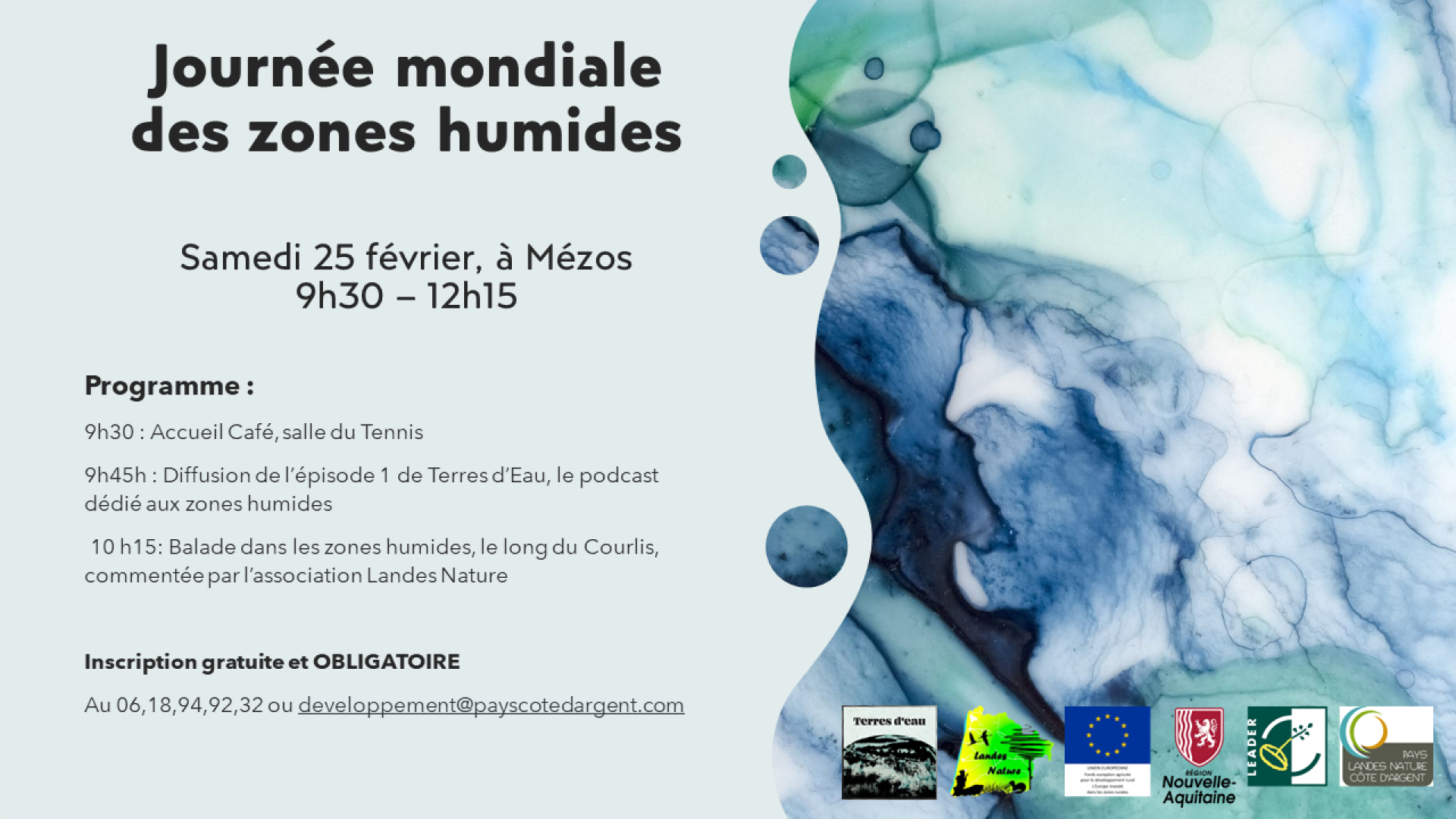- 9h45h : Diffusion de l’épisode 1 de Terres d’Eau, le podcast dédié aux zones humides.