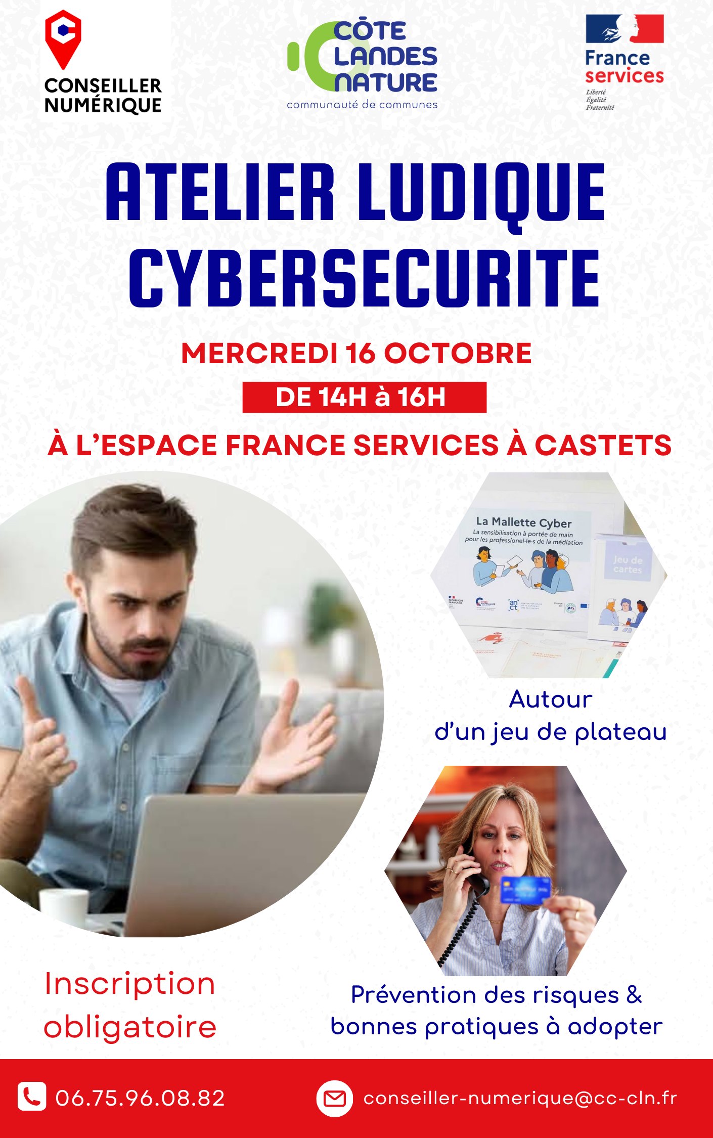 - Atelier cybersécurité : le mercredi 16 octobre à 14h à l'Espace France Services de Castets